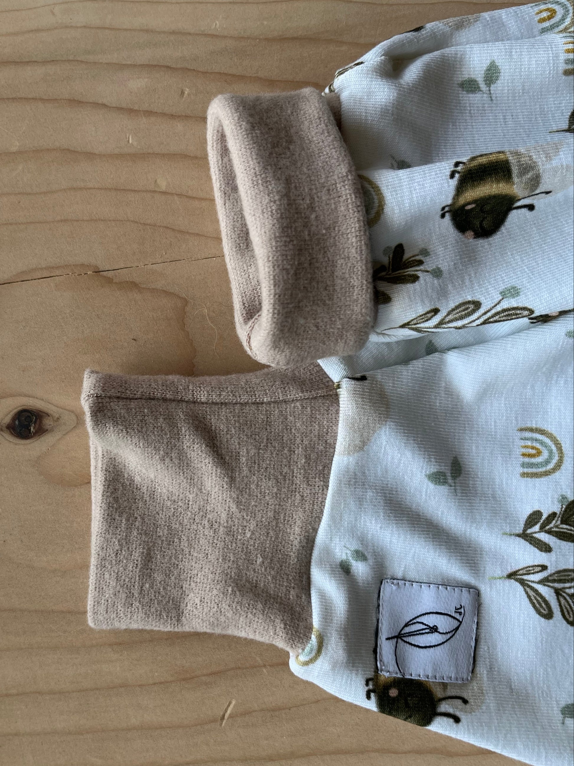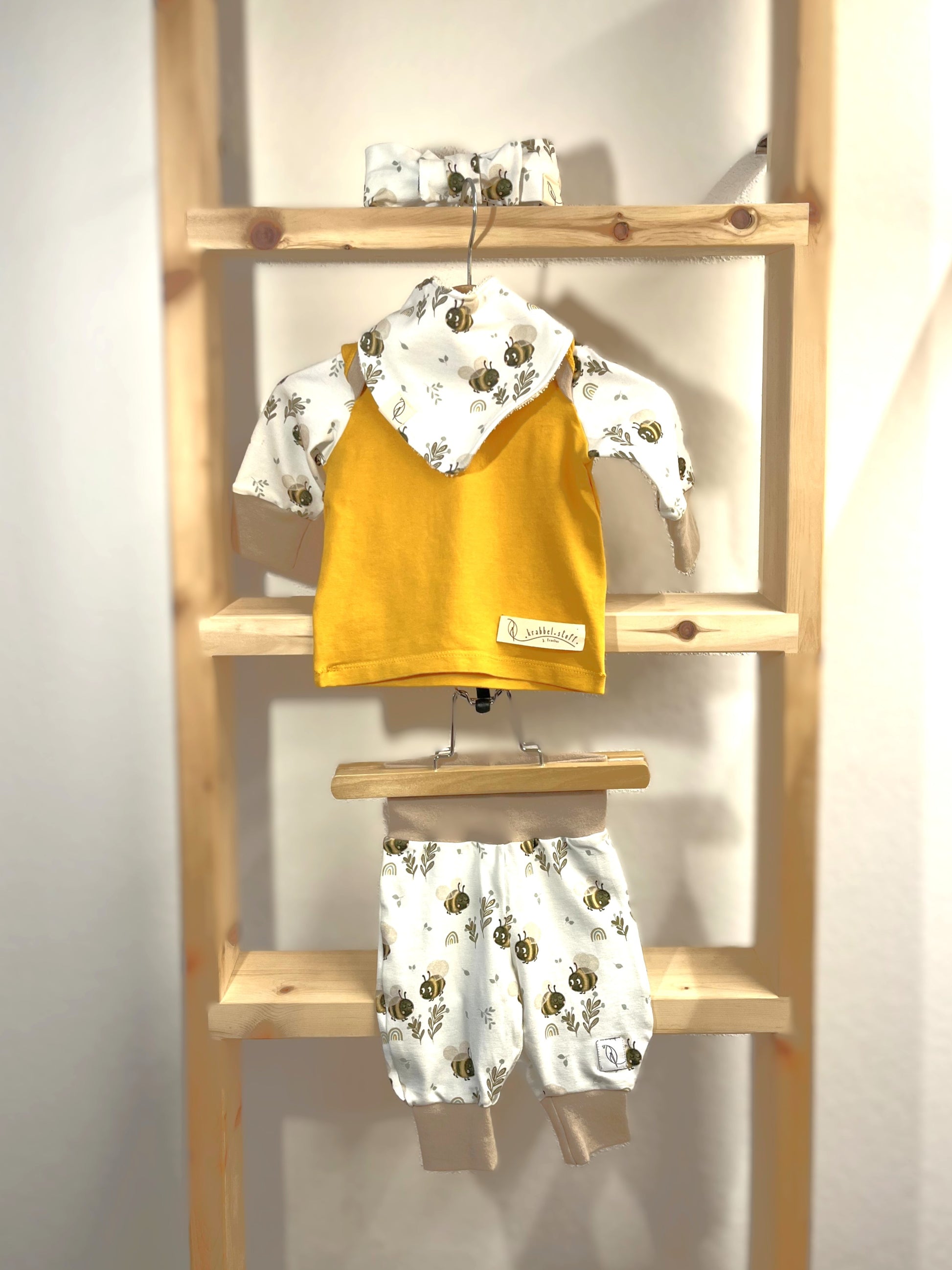 Questo cofanetto regalo preparato con cura, contiene un paio di pantaloni che con la loro elasticità e comodità si adattano perfettamente alle esigenze del tuo bambino e ai pannolini lavabili. i nostri vestiti sono senza cerniere e bottoni, il che li rende particolarmente comodi da indossare e togliere. Grazie ai risvolti le maglie e i pantaloni si adattano alla crescita del bambino e permettono di essere usati piu a lungo.
