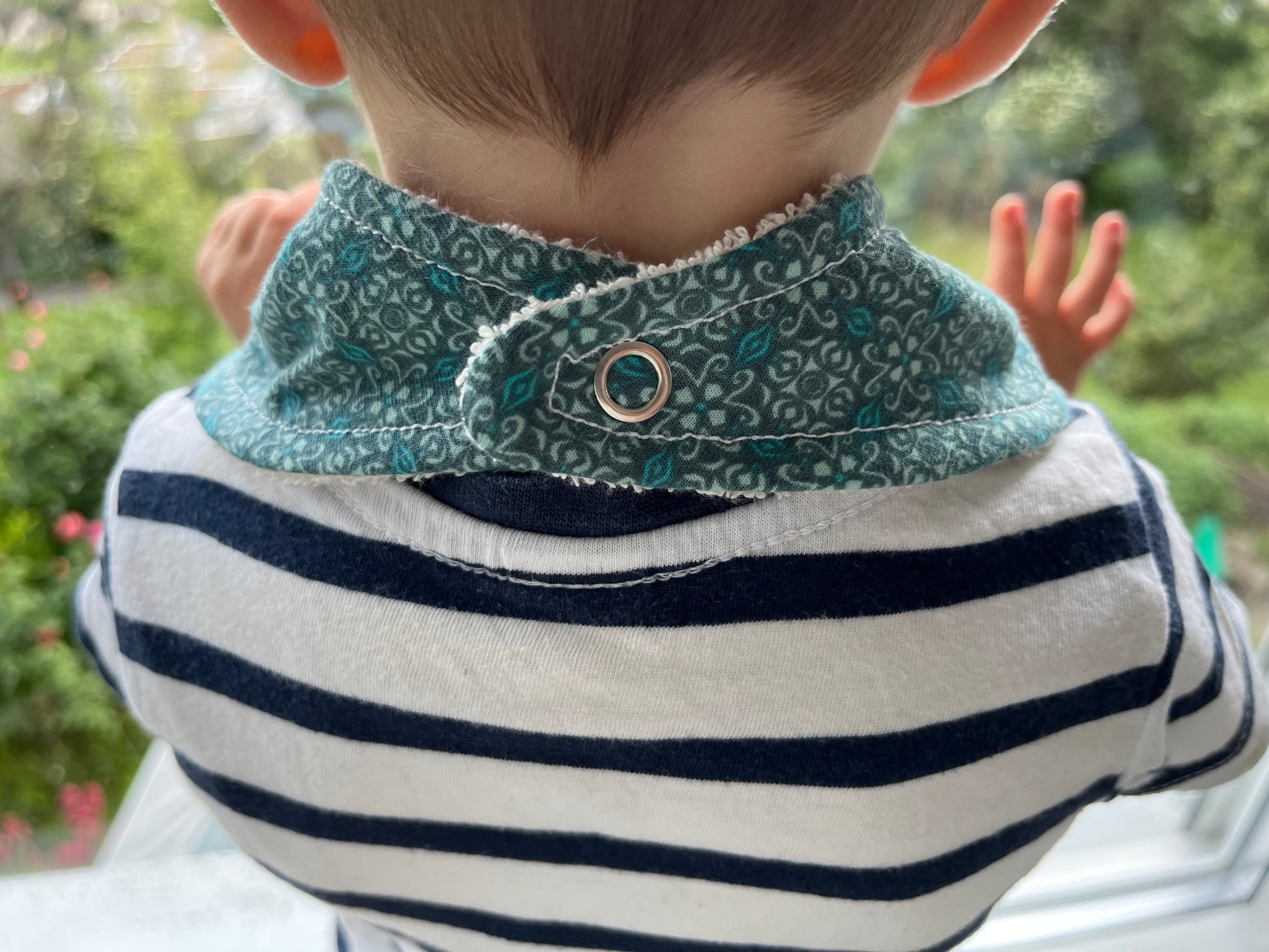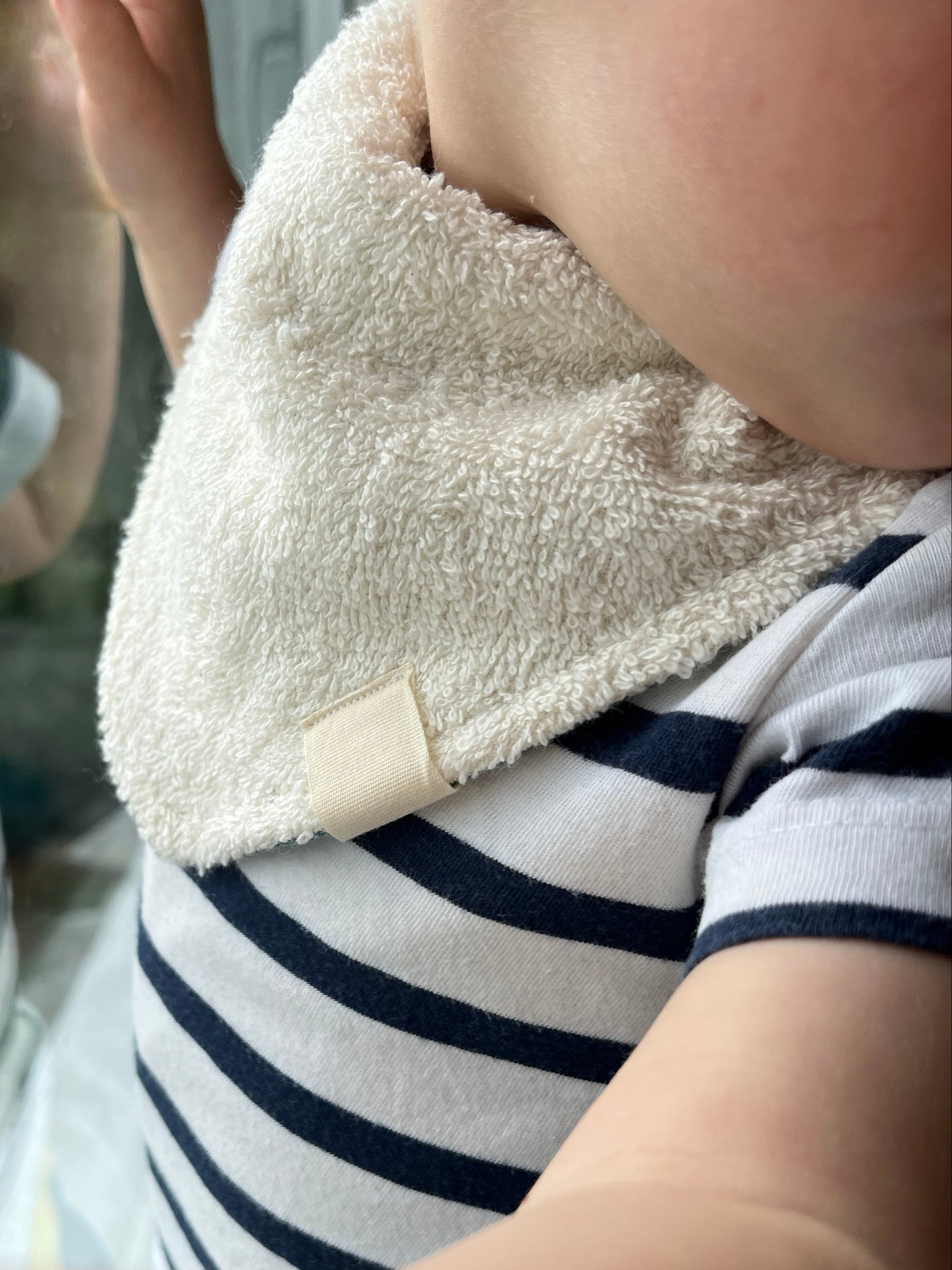 Funzione due in uno: un lato bavaglia in spugna e un lato che assorbe lo sbrodolio del bambino .