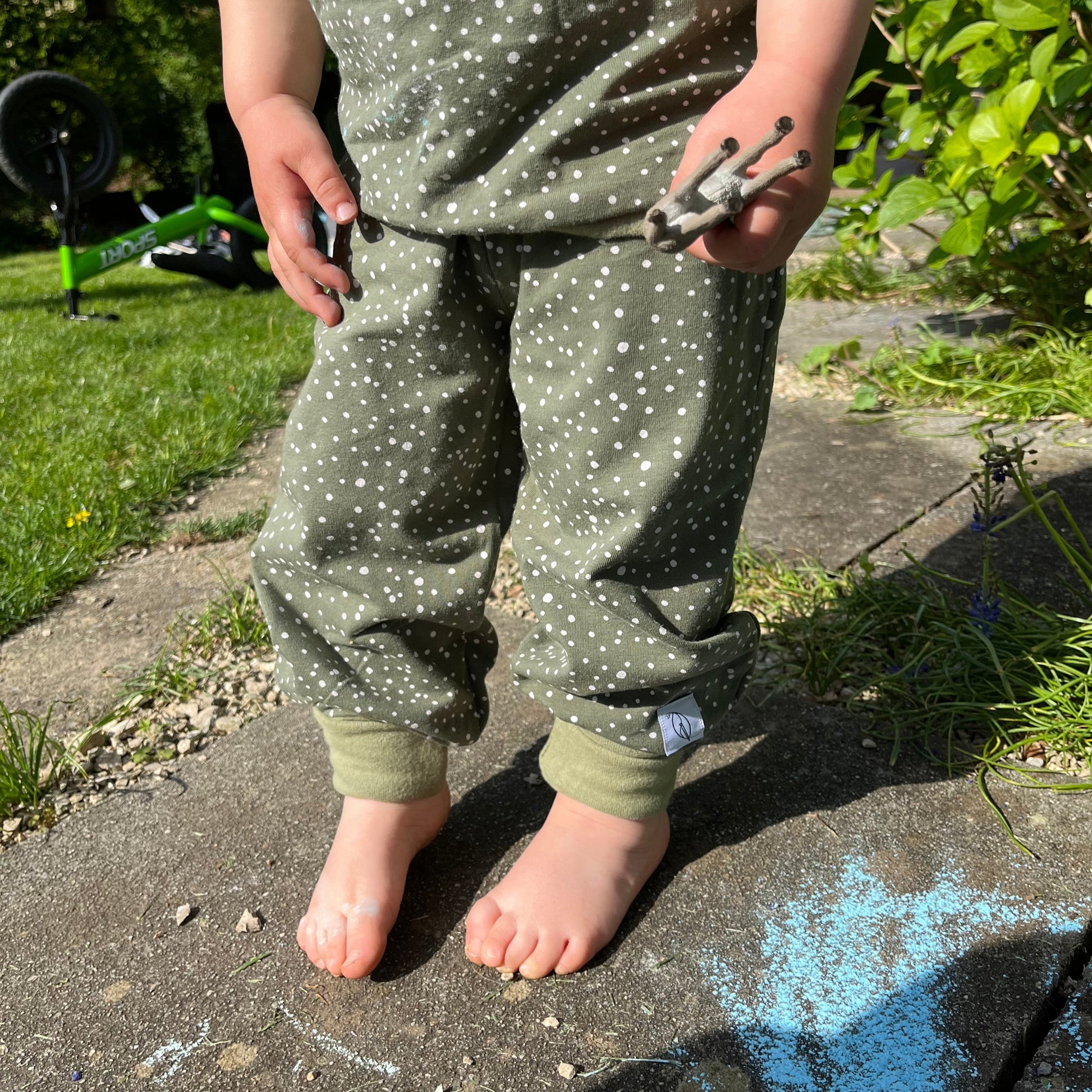 Questi pantaloni cuciti a mano sono elastici e comodi. I risvolti su pancia e gambe sono pieghevoli e crescono con il tuo bambino. I pantaloni sono ideali per i pannolini lavabili perché sono molto elastici e spaziosi.