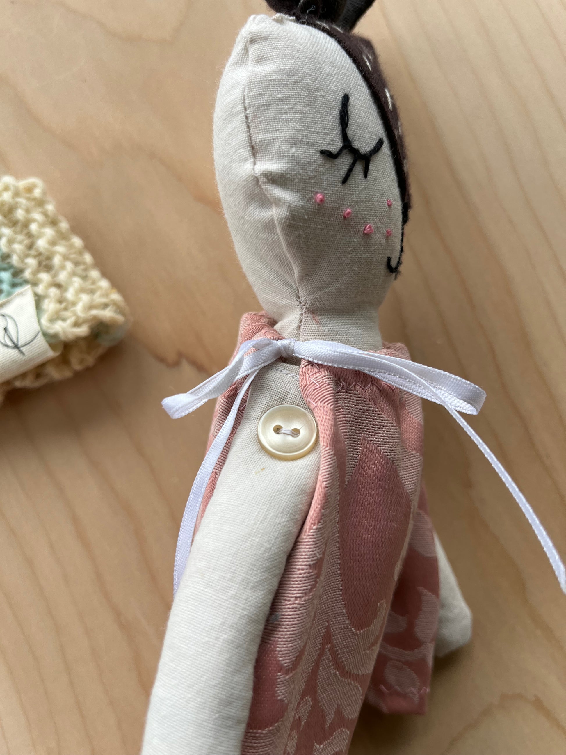 Simpatiche bambole di pezza realizzate con ritagli di stoffa e materiale riciclato, oggetti decorativi per camerette, culle o passeggini