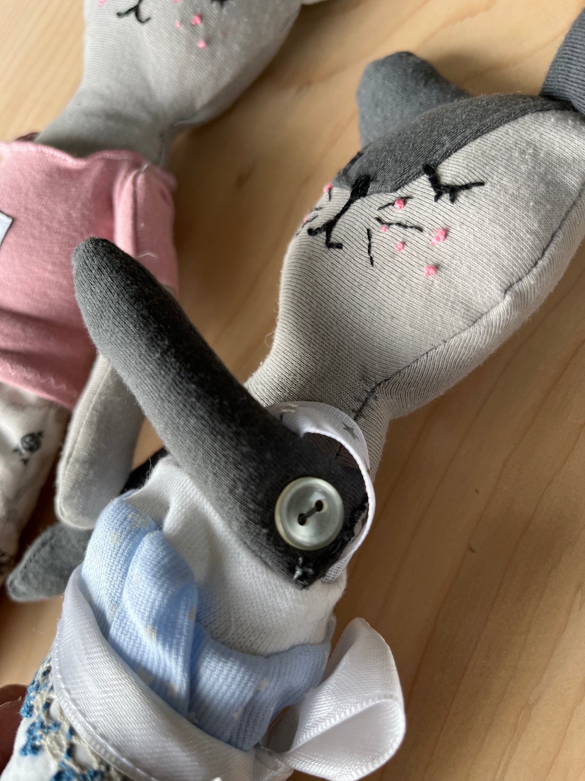 Simpatiche bambole di pezza realizzate con ritagli di stoffa e materiale riciclato, oggetti decorativi per camerette, culle o passeggini