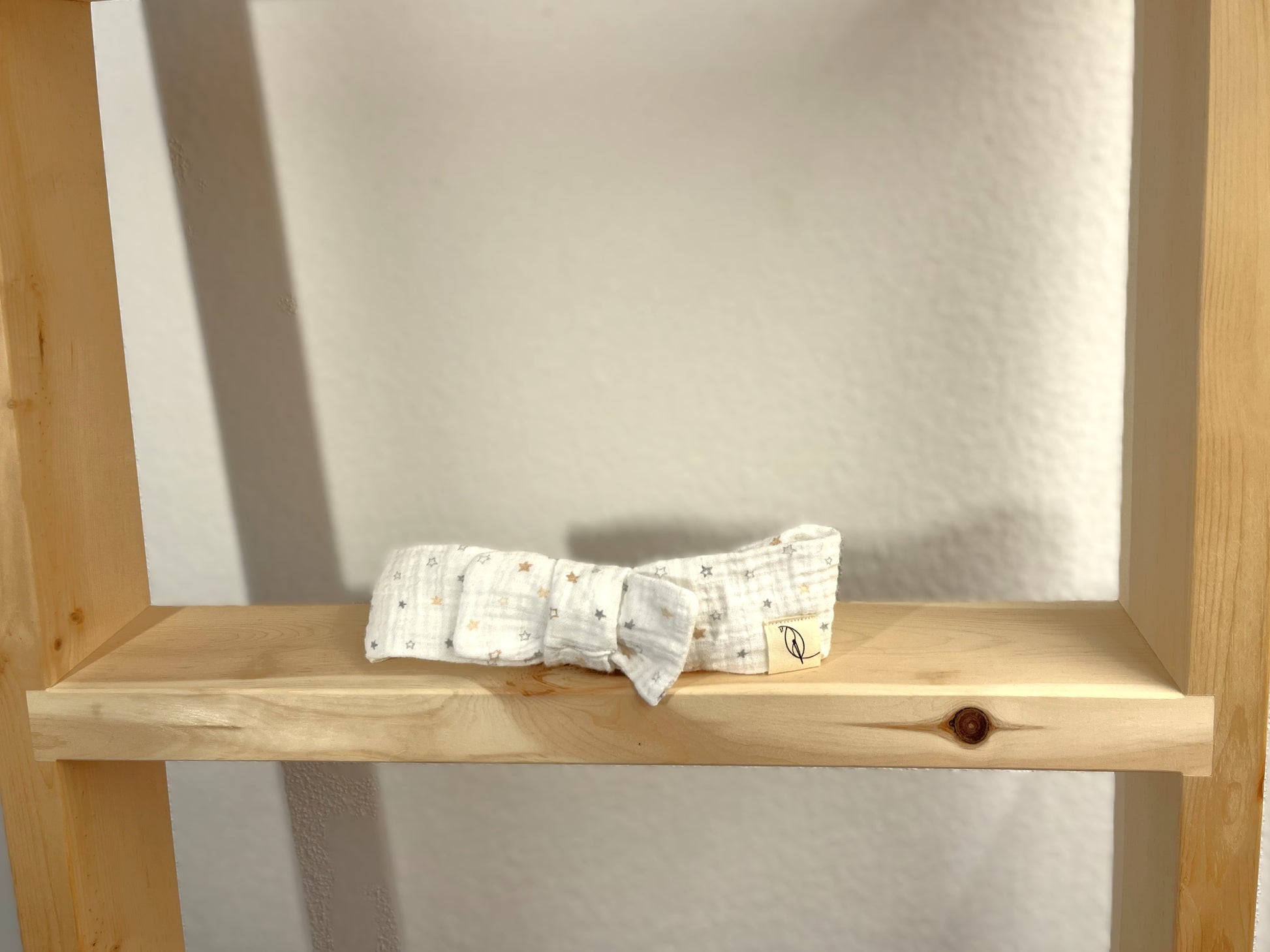 Aus gebrauchtem Stoff: Braun und weisse Stirnbänder
