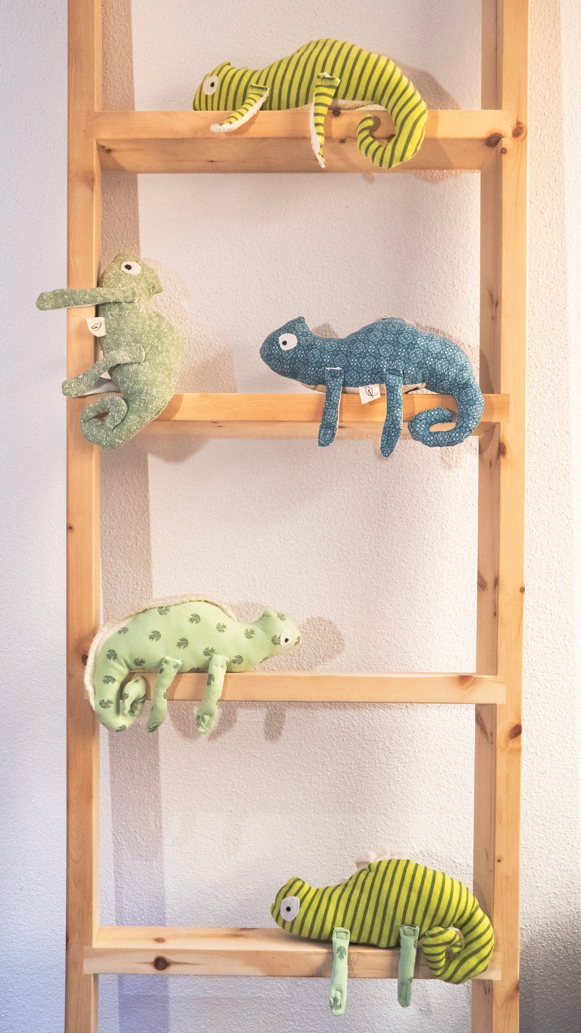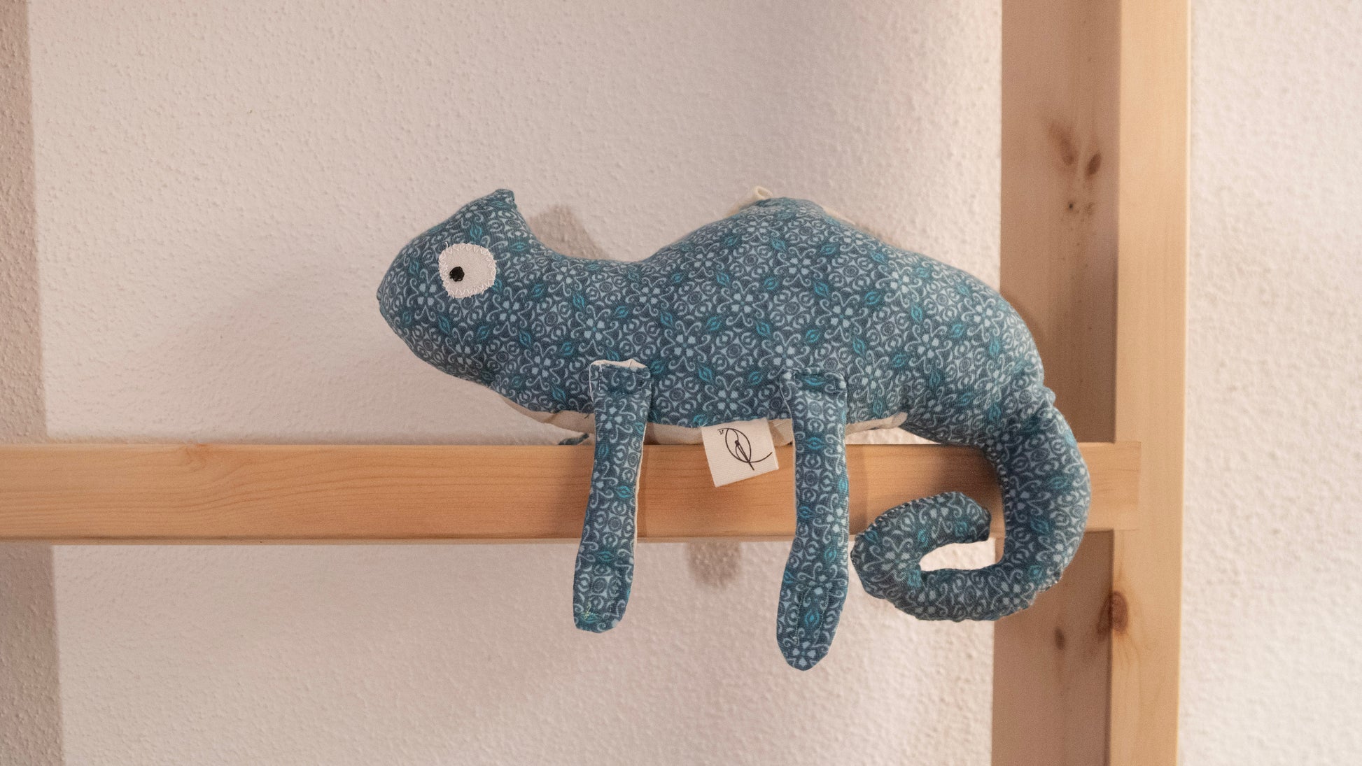 Camaleonte di peluche con zampe in velcro.