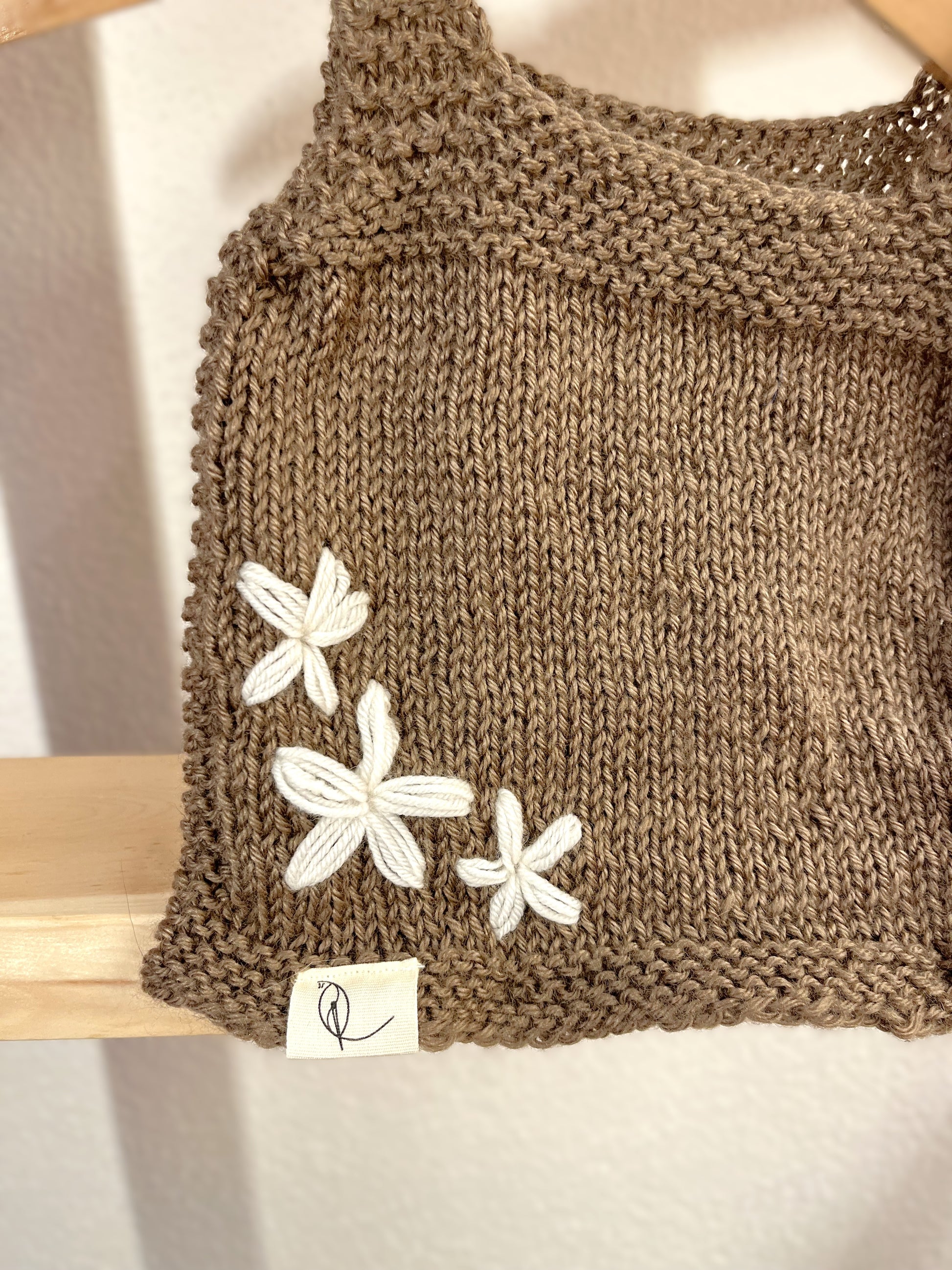 Diese liebevoll gestaltete Geschenkbox enthält ein handgestrickte Wollgilet mit passende Baby-Stirnband