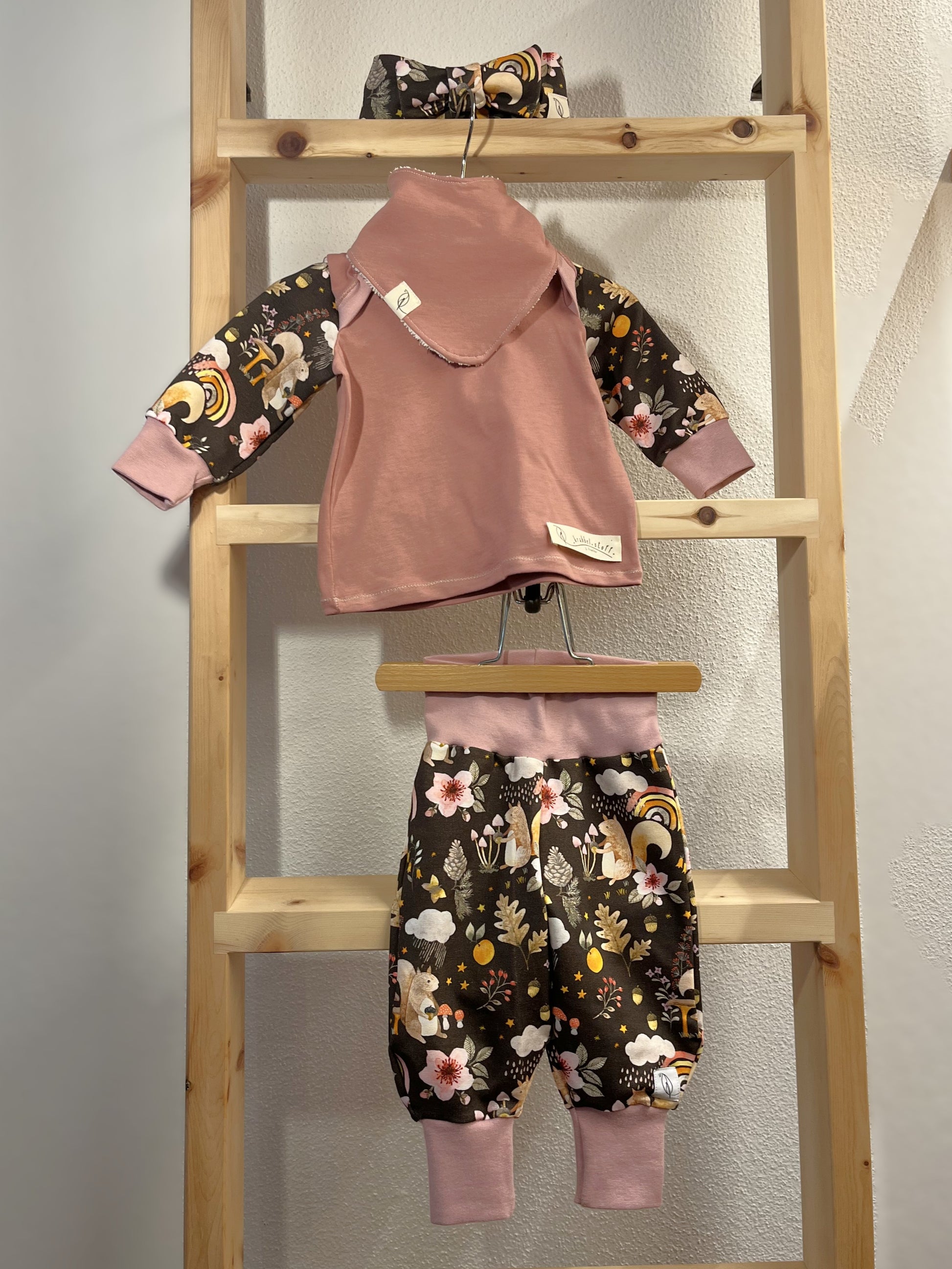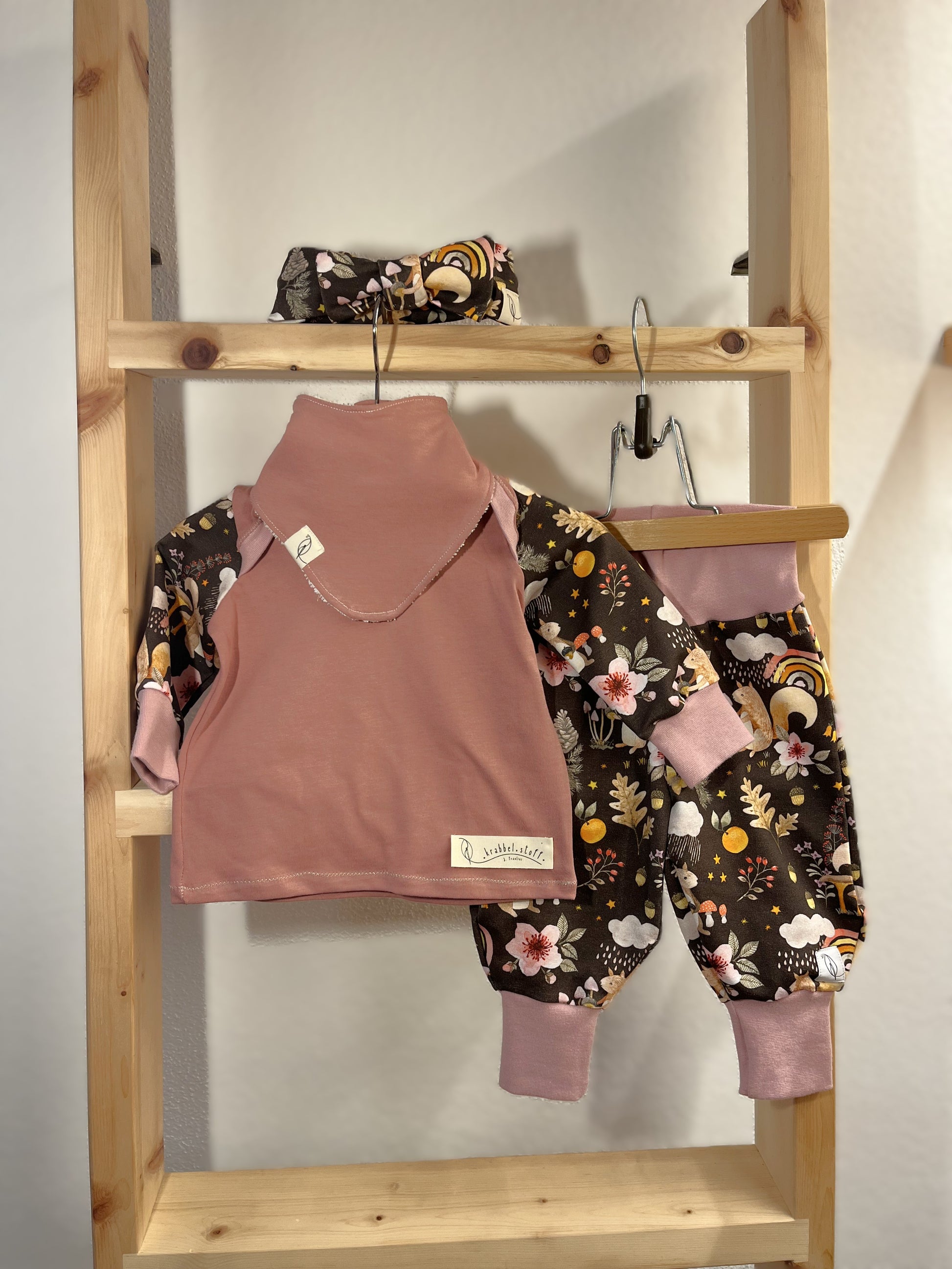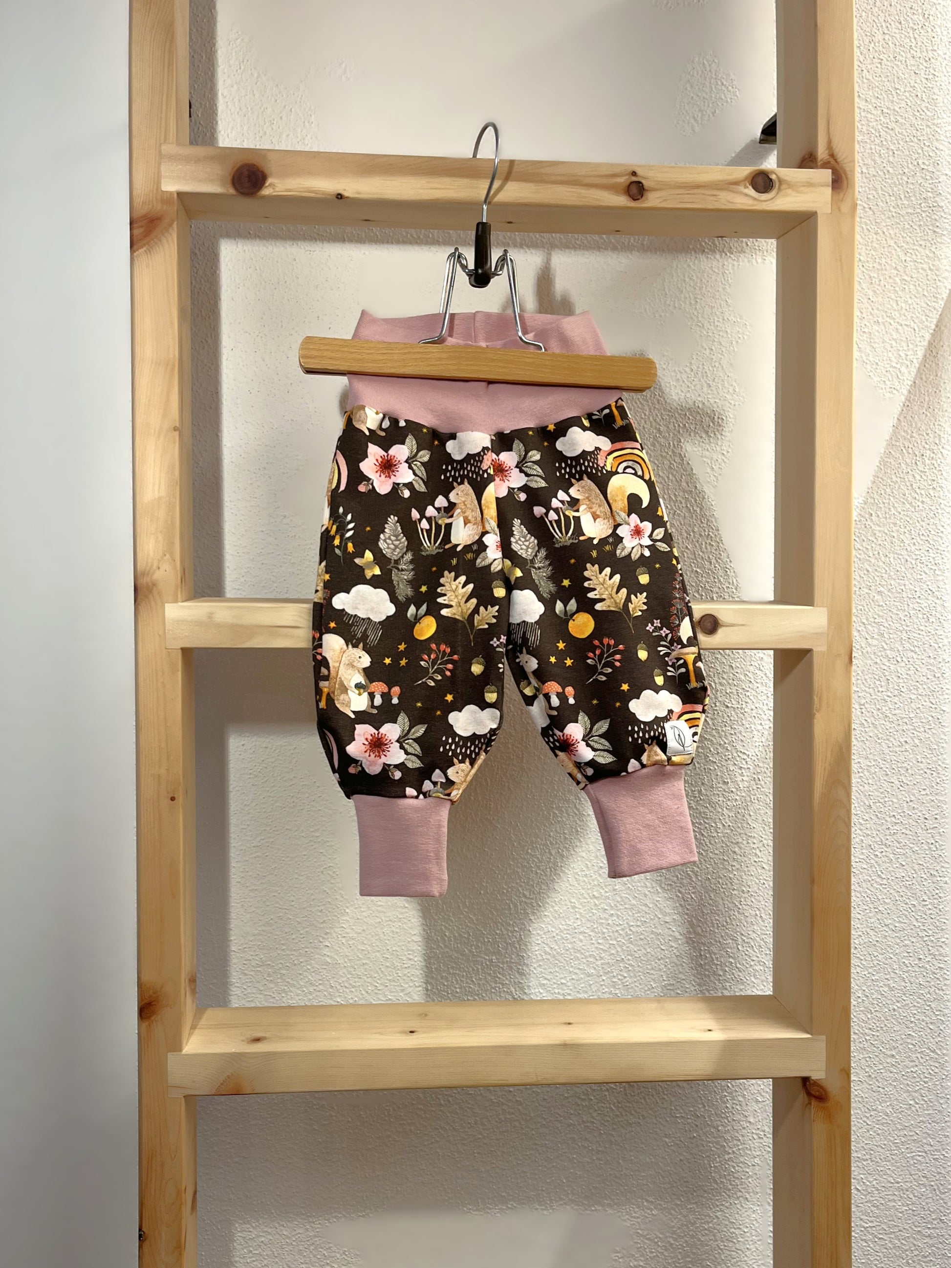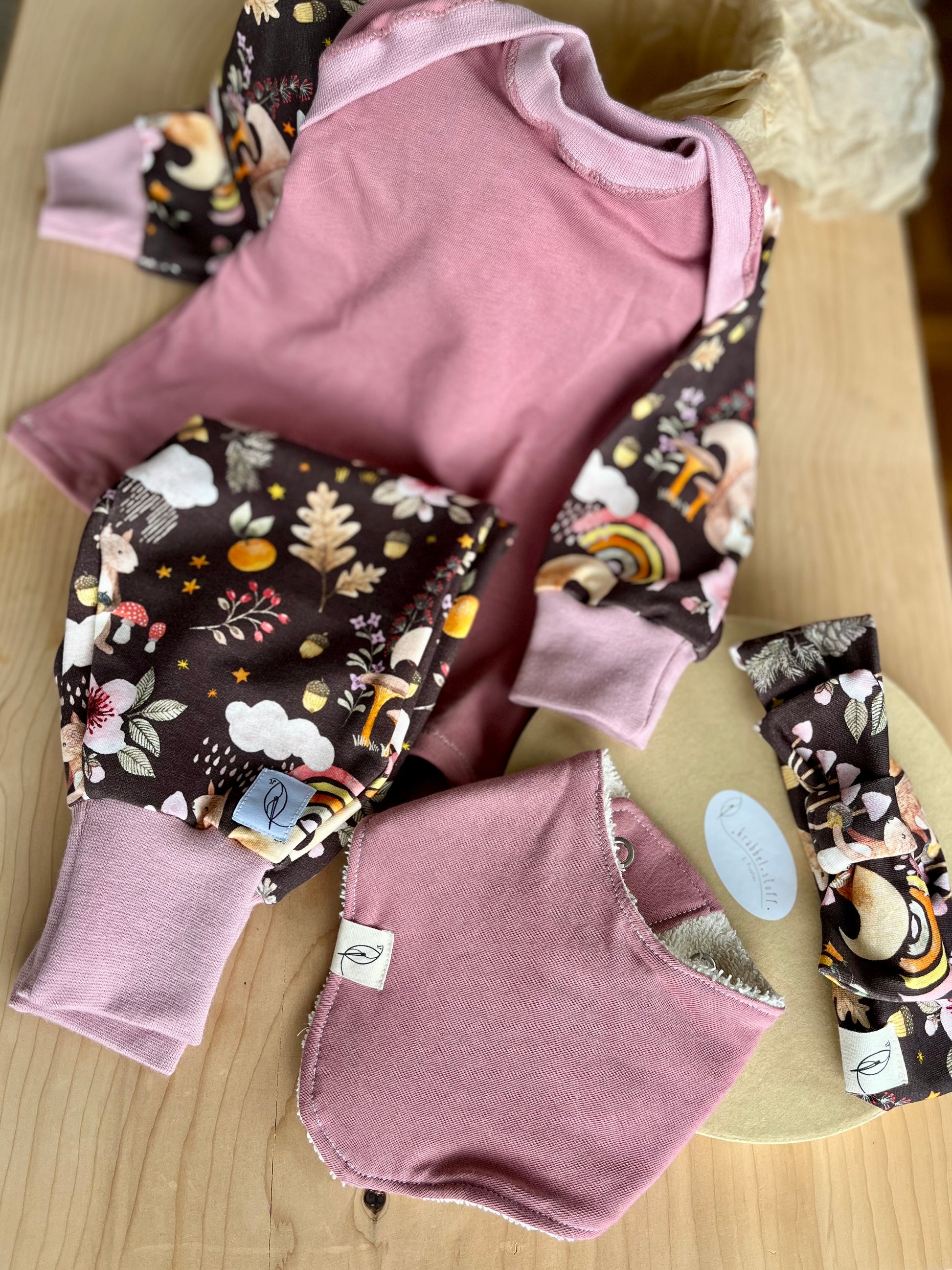 Diese liebevoll gestaltete Geschenkbox enthält handgenähte Pumphosen, die durch ihre Elastizität und Bequemlichkeit ideal für Stoffwindeln geeignet sind. Die Kleidungsstücke kommen ohne Knöpfe oder Reißverschlüsse aus, was das Anziehen erleichtert. Dank der Bündchen an Bauch und Beinen passt sich die Hose flexibel an das Wachstum des Kindes an und bietet somit eine lange Tragdauer.