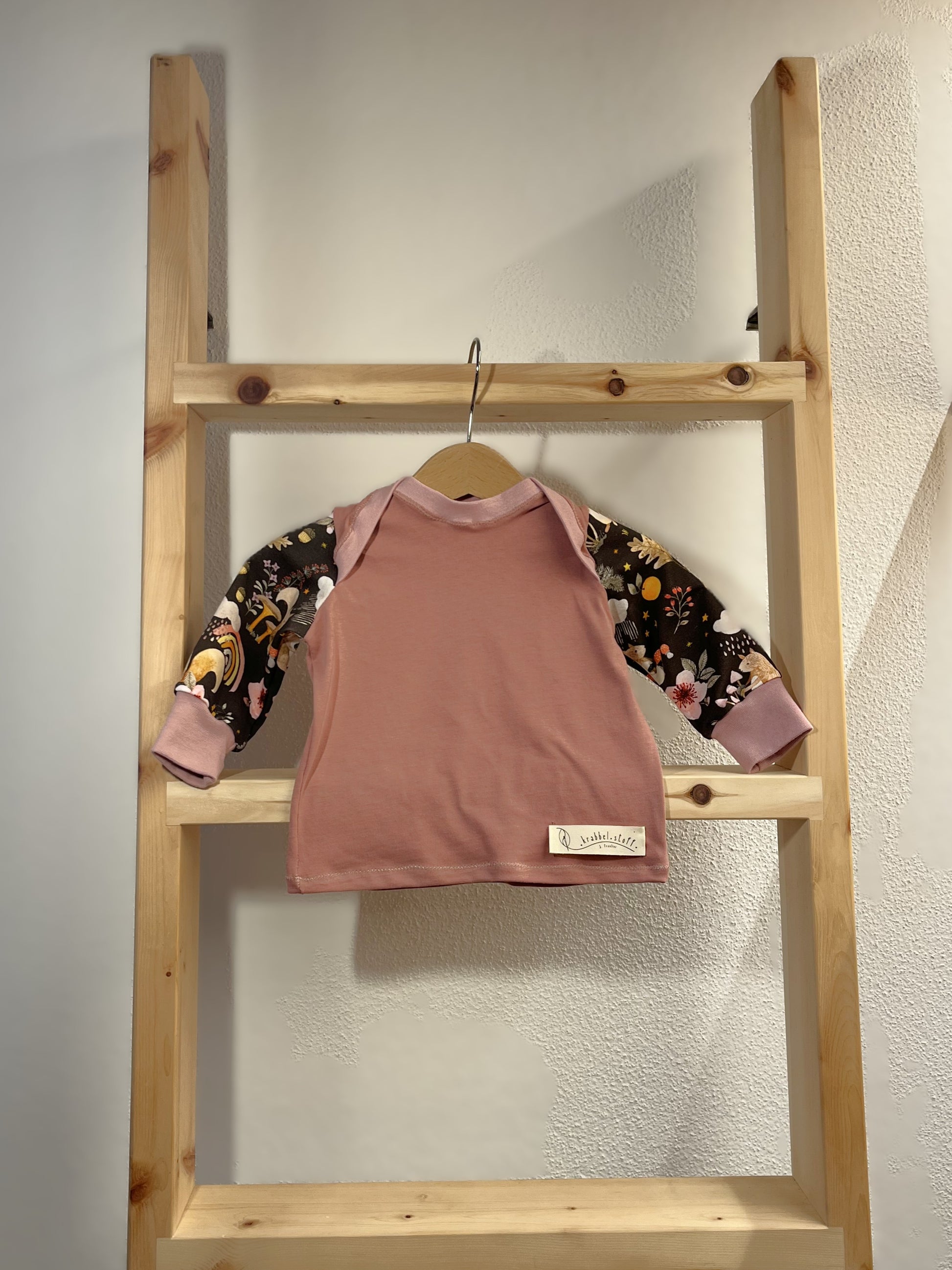 - Oberteil: Oberteil aus gebrauchtem Stoff und Bündchen und Ärmel aus neuem Stoff, Baumwolljersey.
