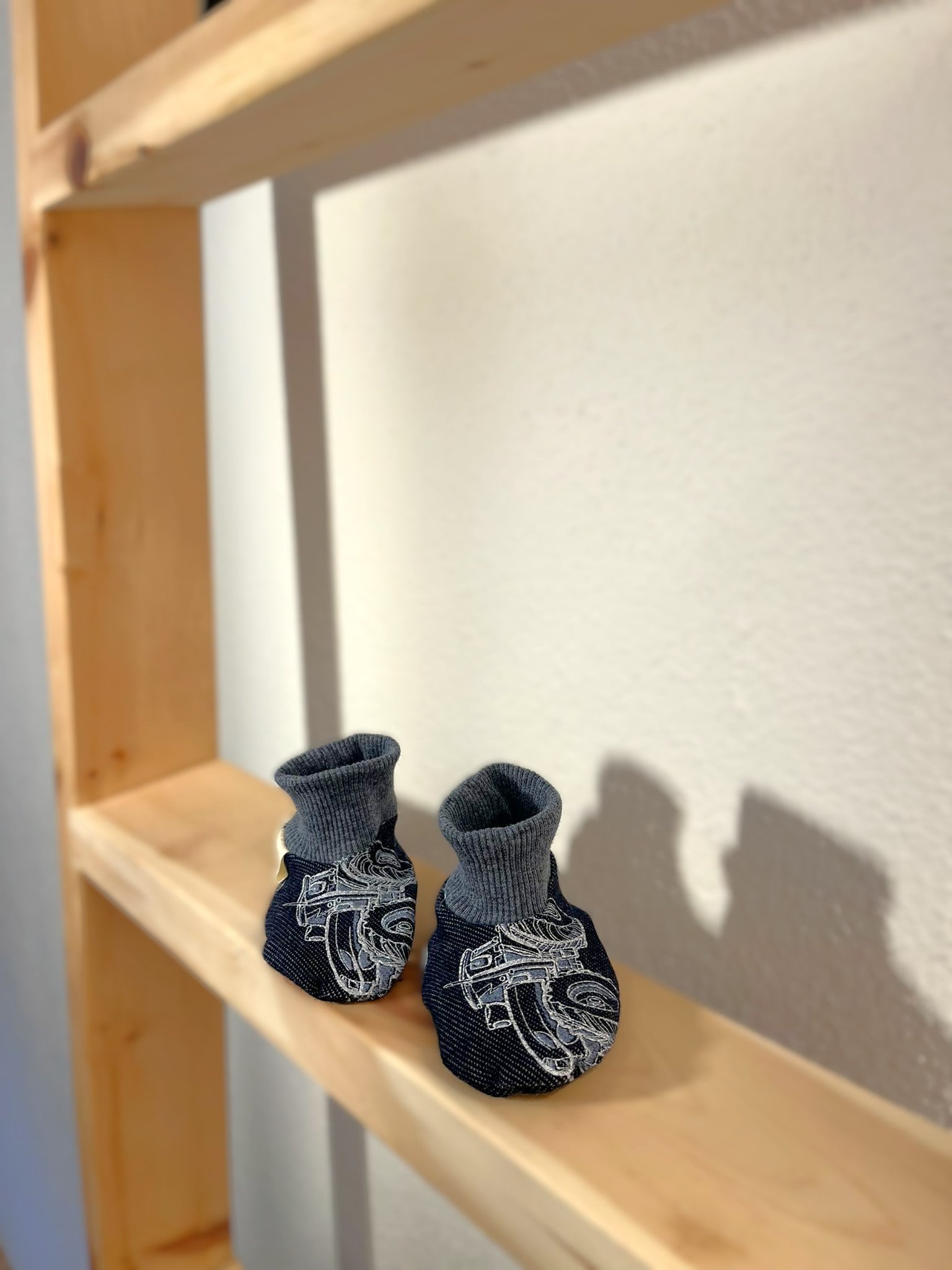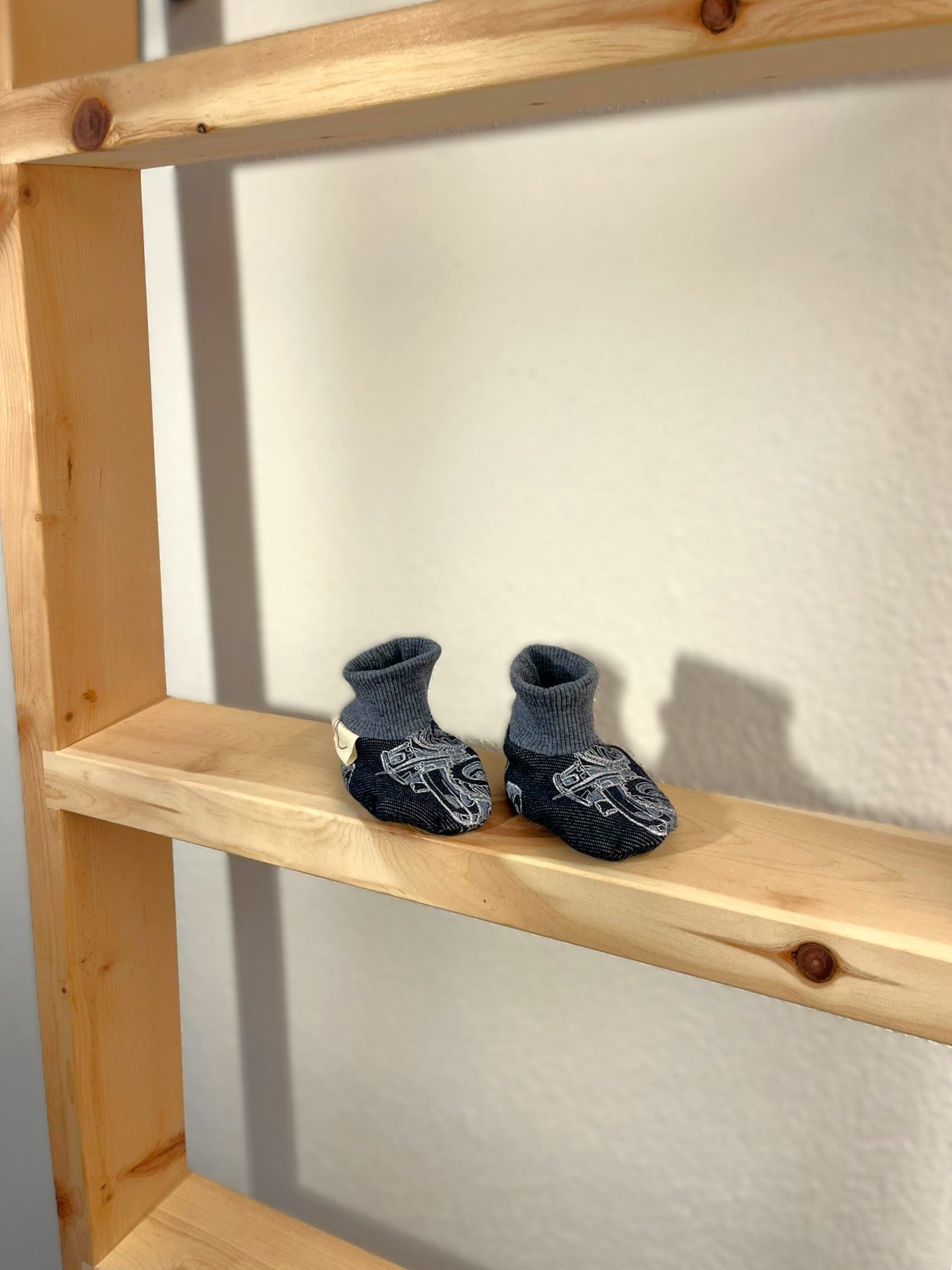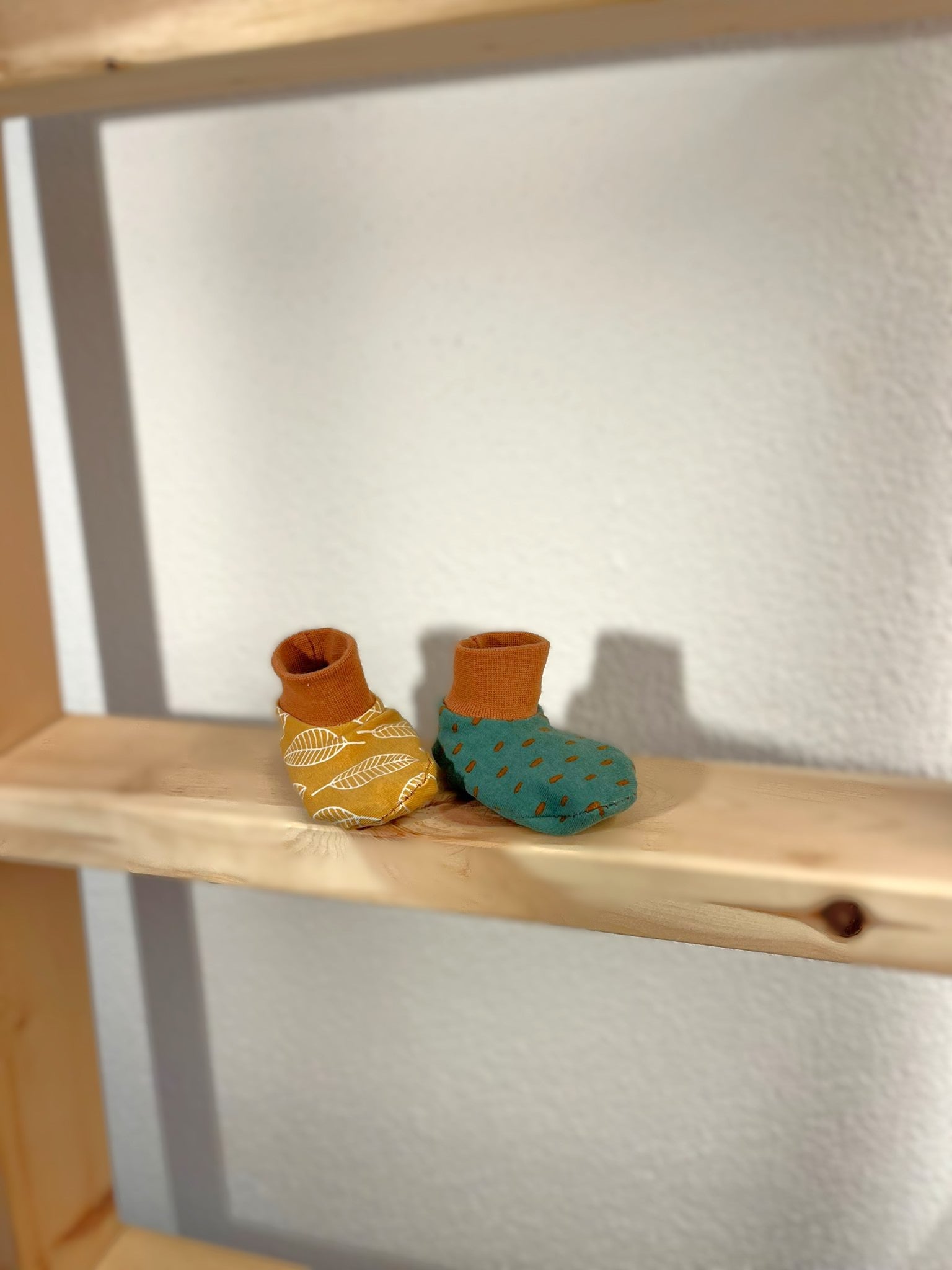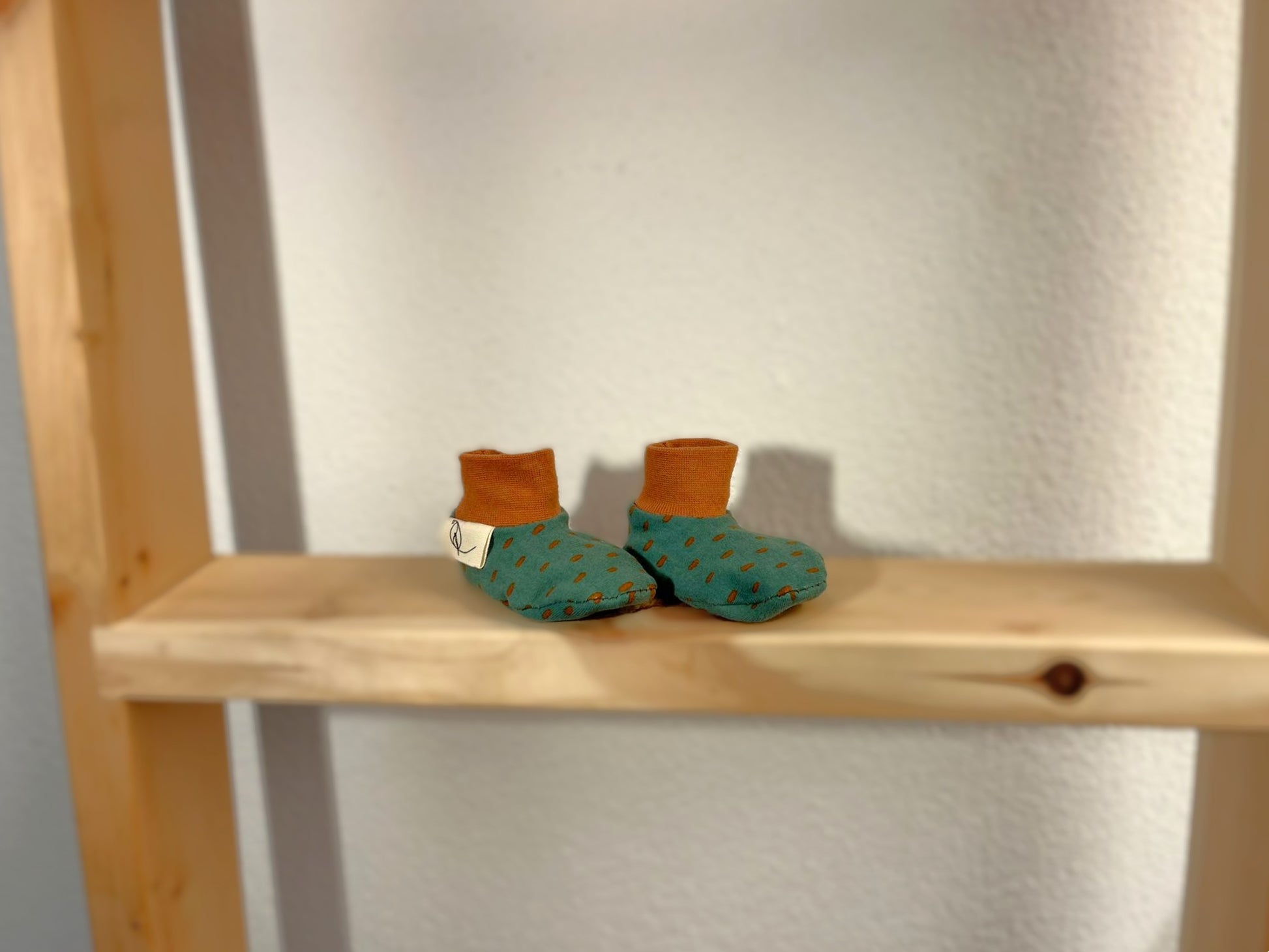 Kuschelige Babyschuhe für die ersten 6 Monate – nachhaltig gemacht aus hochwertigen Stoffresten und recyceltem Material. Die cleveren Dehnbündchen halten perfekt an winzigen Füßchen, ohne zu rutschen oder zu drücken.